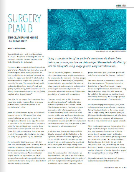 Stem cell treatments – only recently available in Canada – have been eliminating the need for orthopedic surgeries for many patients in the United States for the last decade.