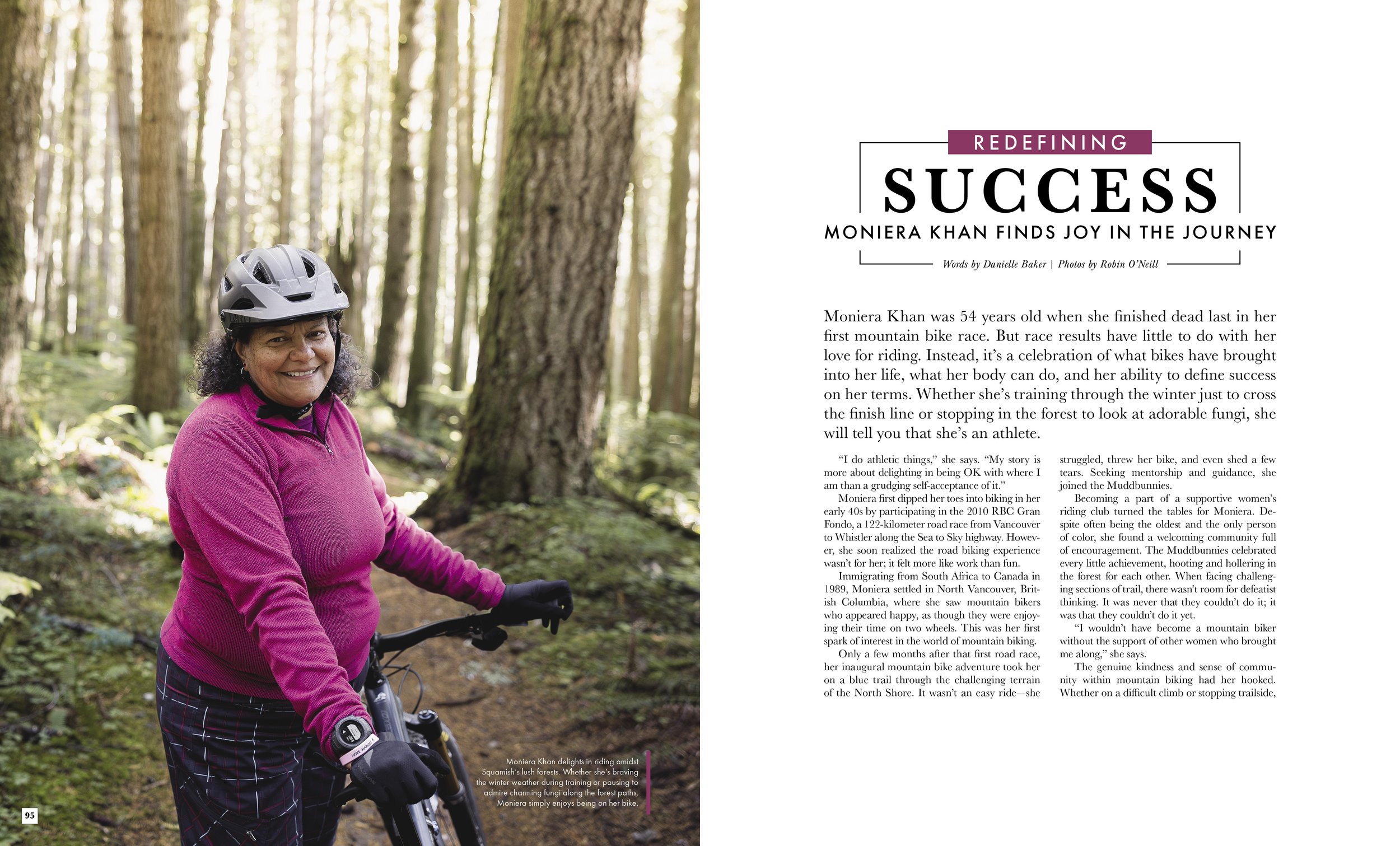 Moniera Khan was 54 years old when she finished dead last in her first mountain bike race. But race results have little to do with her love for riding.